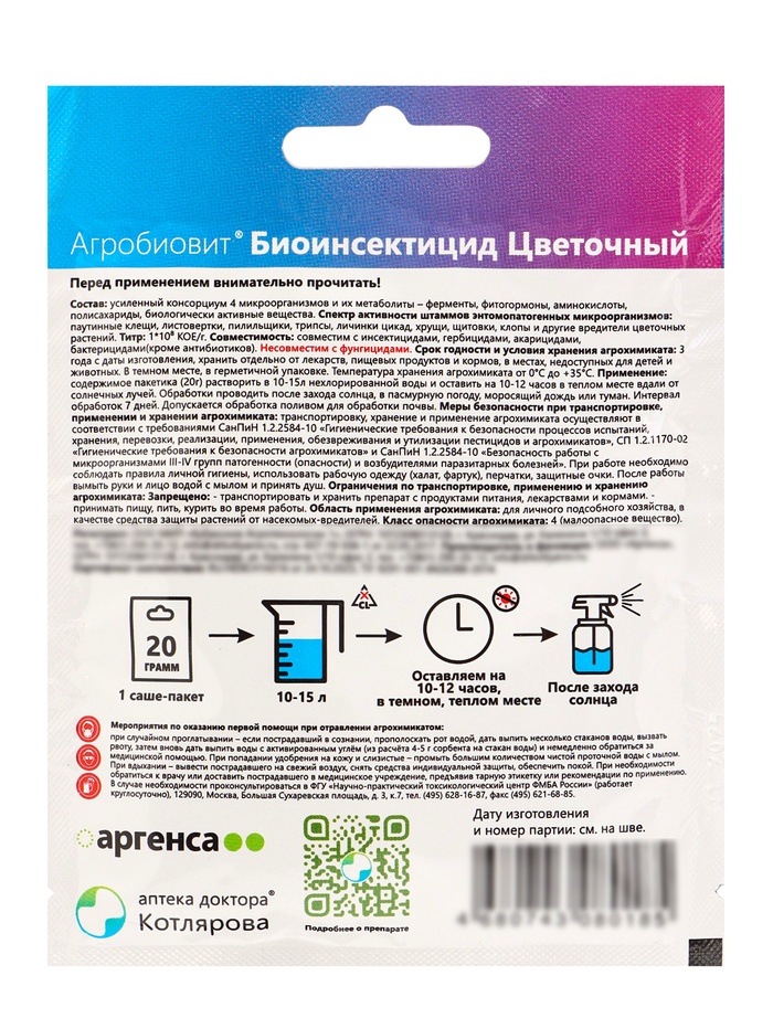 Агробиовит Биоинсектицид Цветочный *новинка 20 г. саше-пакет (комплект 3 шт)