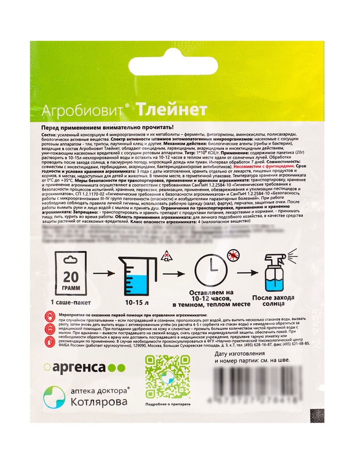 Агробиовит Тлейнет 20 г. саше-пакет (комплект 3 шт)