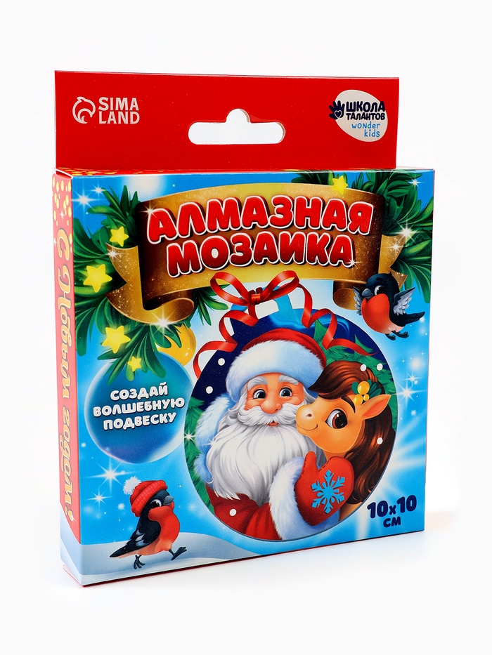 Алмазная мозаика на круглой подвеске 10×10 «Дед Мороз и Лошадка»