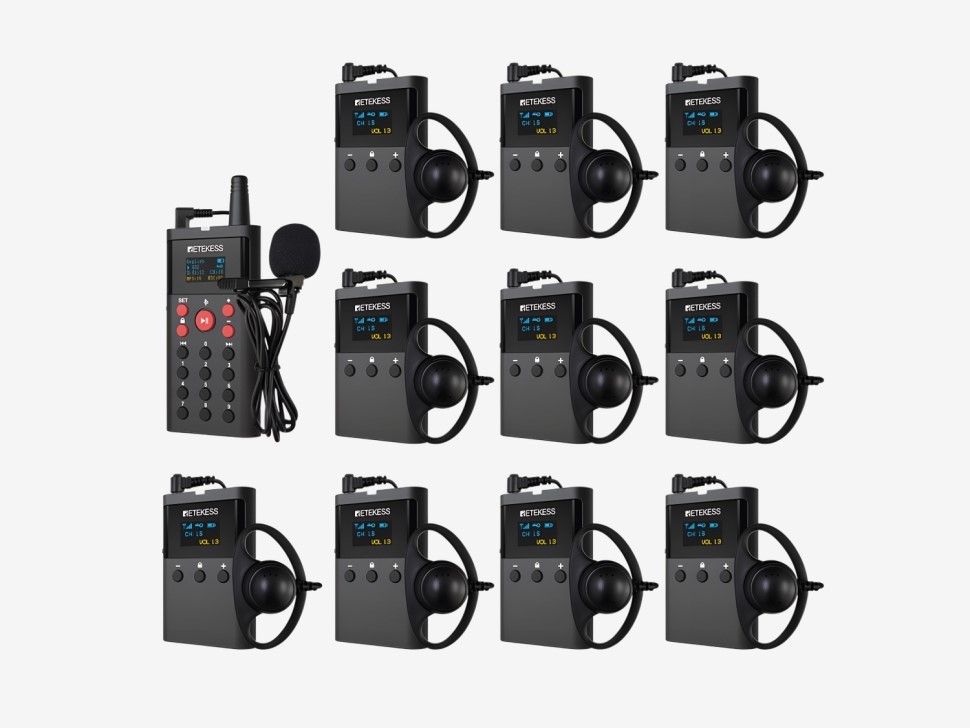 Автоматическое сопряжение: синхронизация приемников с передатчиком происходит за считанные секунды — без ручной настройки каналов. Это экономит время перед началом экскурсии.Выключение всех приемников: система позволяет выключить все приемники одновременно, удержанием двух кнопок на передатчике — удобно при завершении экскурсии или во время технического перерыва.