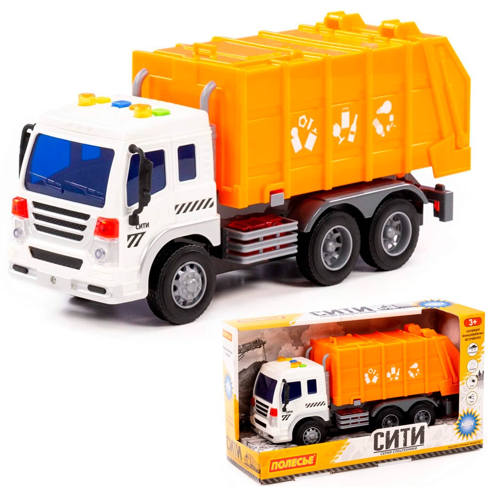 Автомобиль CITY коммунальный инерционный со светом и звуком оранжевый в коробке 86426 П-Е /8/