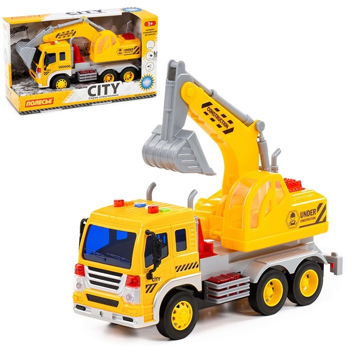 Автомобиль экскаватор Сити инерц. свет, звук желтый в коробке 86365 П-Е /8/