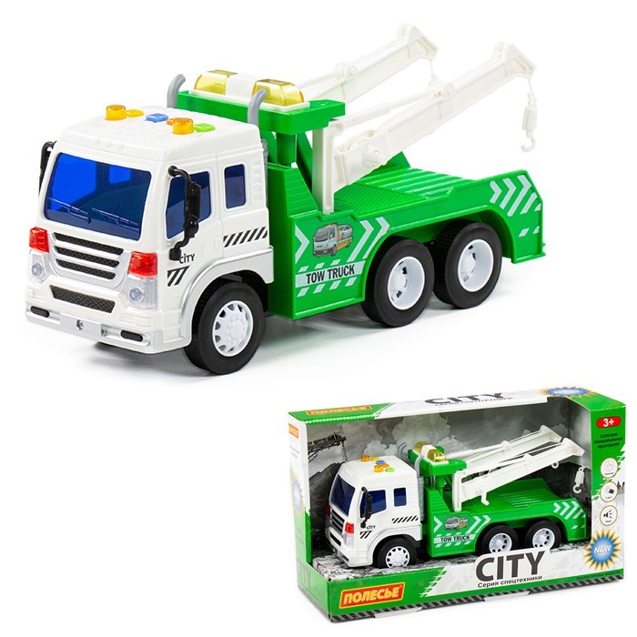 Автомобиль эвакуатор Сити инерц. свет, звук зеленый в коробке 86563 П-Е /8/