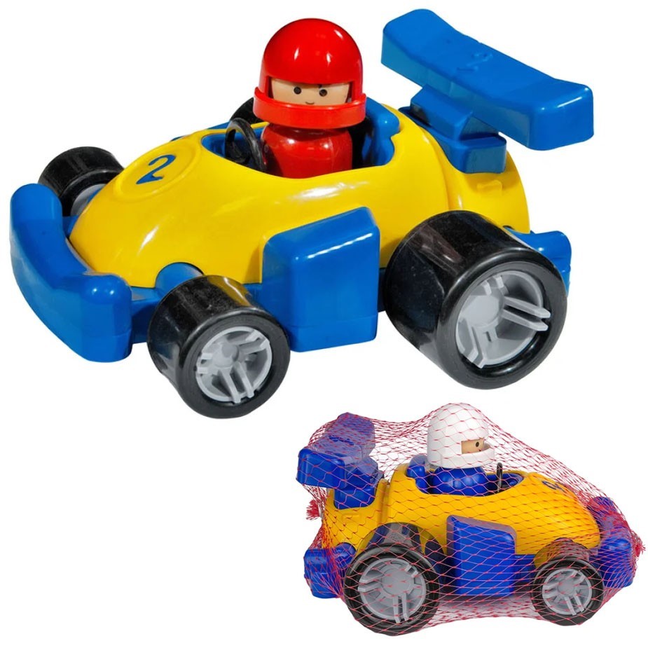 Яркая гоночная машинка с гонщиком порадует ребенка и позволит ему устраивать настоящие соревнования. Фигурка за рулем может поворачивать голову и ее можно доставать, а все элементы игрушки выполнены из качественного безопасного пластика. Товар представлен в ассортименте.