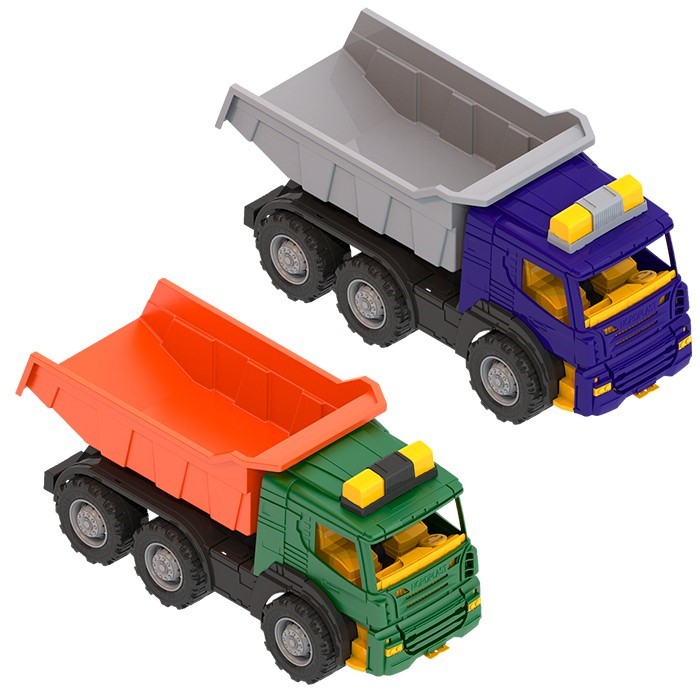 • Яркая модель представляет собой копию грузовика с вместительным кузовом.