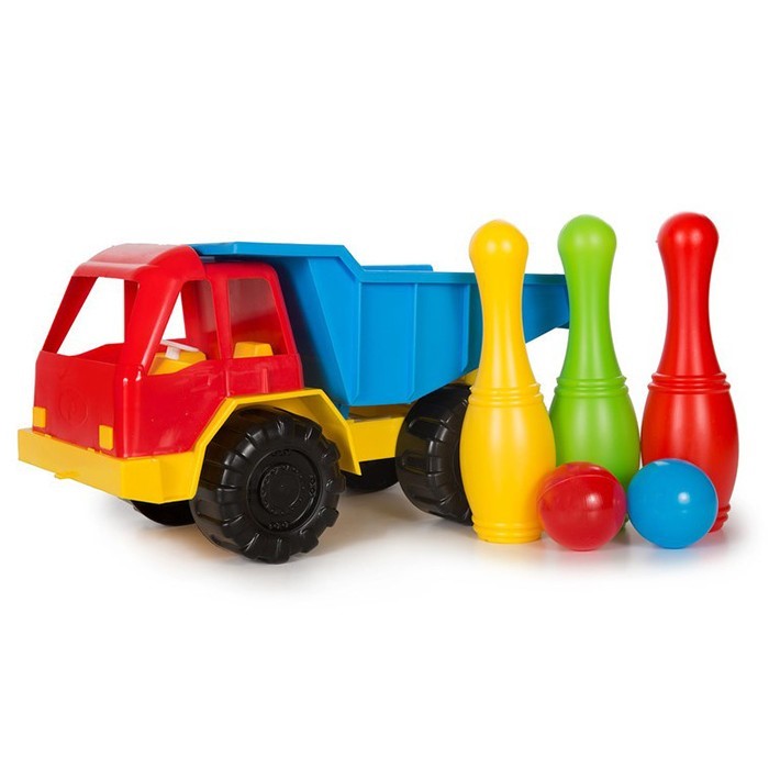 Сразу две игрушки в одном наборе - набор из трех кеглей с двумя шарами, и яркий грузовик с вместительным кузовом. Бросая шарики в кегли, ребенок может потренироваться в меткости и ловкости, развивая глазомер, а большой грузовик подойдет для домашних и уличных игр. Все элементы игрушки изготовлены из высококачественного пластика, не имеют острых углов и зазубрин. Товар представлен в ассортименте.