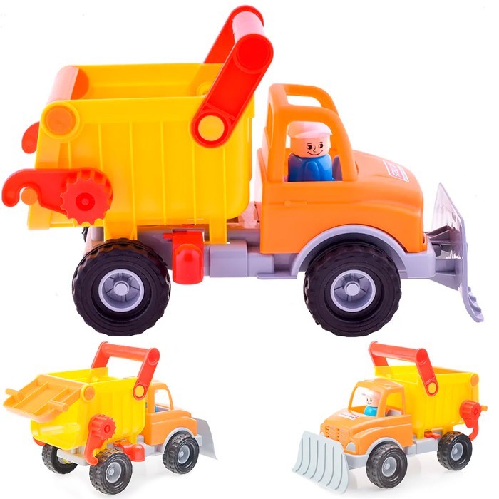 Маленькие любители машинок оценят этот большой и функциональный самосвал. Есть крепление для веревочки. Грузовик изготовлен из высококачественных и износостойких материалов. С этой машинкой интересно будет устраивать игры с друзьями и веселые гонки. Изделия просты в уходе и эксплуатации, прочные и долговечные, они будут долго радовать своим внешним видом.