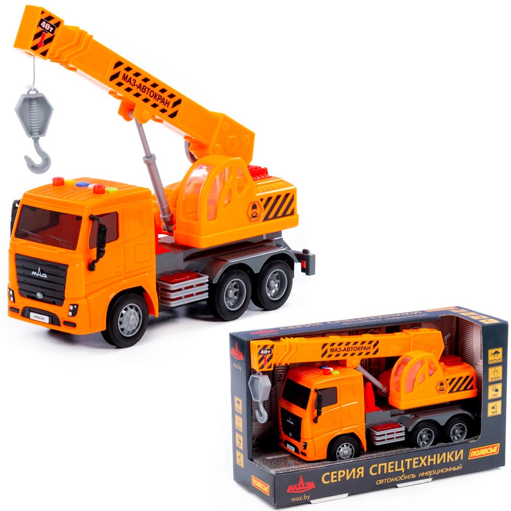 Автомобиль кран МАЗ инерционный со светом и звуком оранжевый в кор. 67293 67293 П-Е /8/