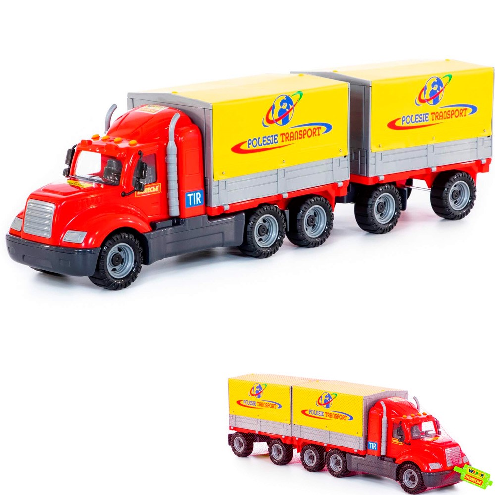 Грузовик с прицепом разнообразит игровые сюжеты и позволит перевозить массу вещей. Кузов и прицеп оснащены тентами. Оригинальная машинка для самых маленьких выполнена из высококачественного пластика. Яркая окраска и интересный дизайн делают машину реалистичной, а процесс игры интересным. Игрушка оснащена крутящимися колесами со свободным ходом и будет хорошо кататься по ровной поверхности. Такая модель станет прекрасным подарком маленькому любителю автомобилей, а также разнообразит игровые сюжеты. С ним можно устроить массу увлекательных игр с друзьями дома или на улице. Изделия просты в уходе и эксплуатации, прочные и долговечные, они будут долго радовать своим внешним видом.