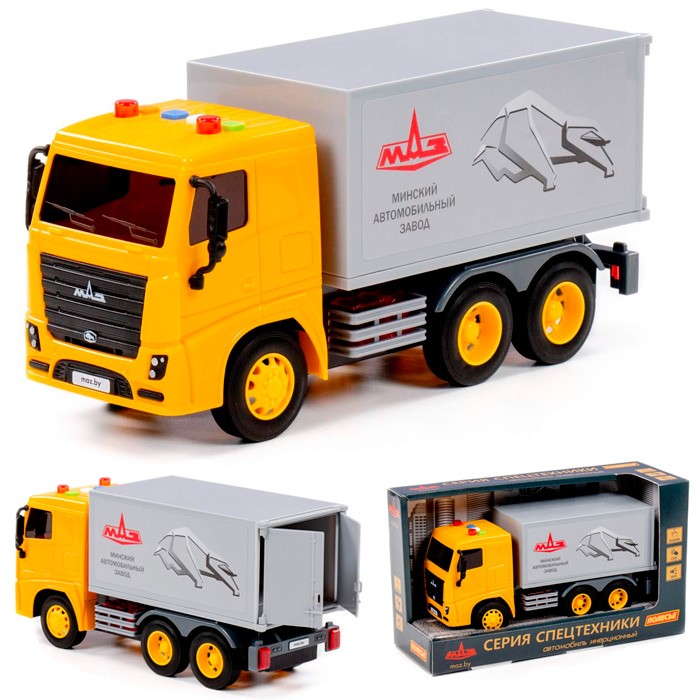 Автомобиль МАЗ-фургон инерционный со светом и звуком (в коробке) 94131 П-Е /8/