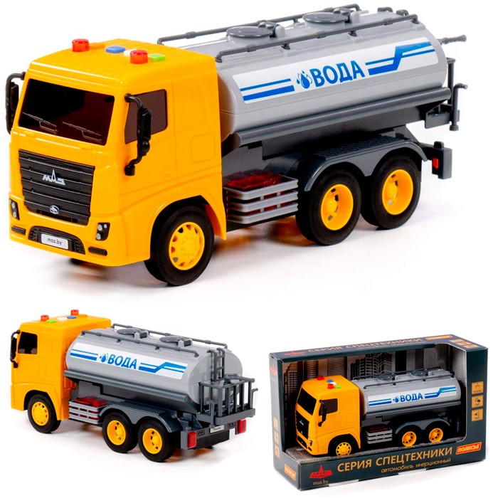 Автомобиль МАЗ поливочный инерционный со светом и звуком (в коробке) 94100 П-Е /8/