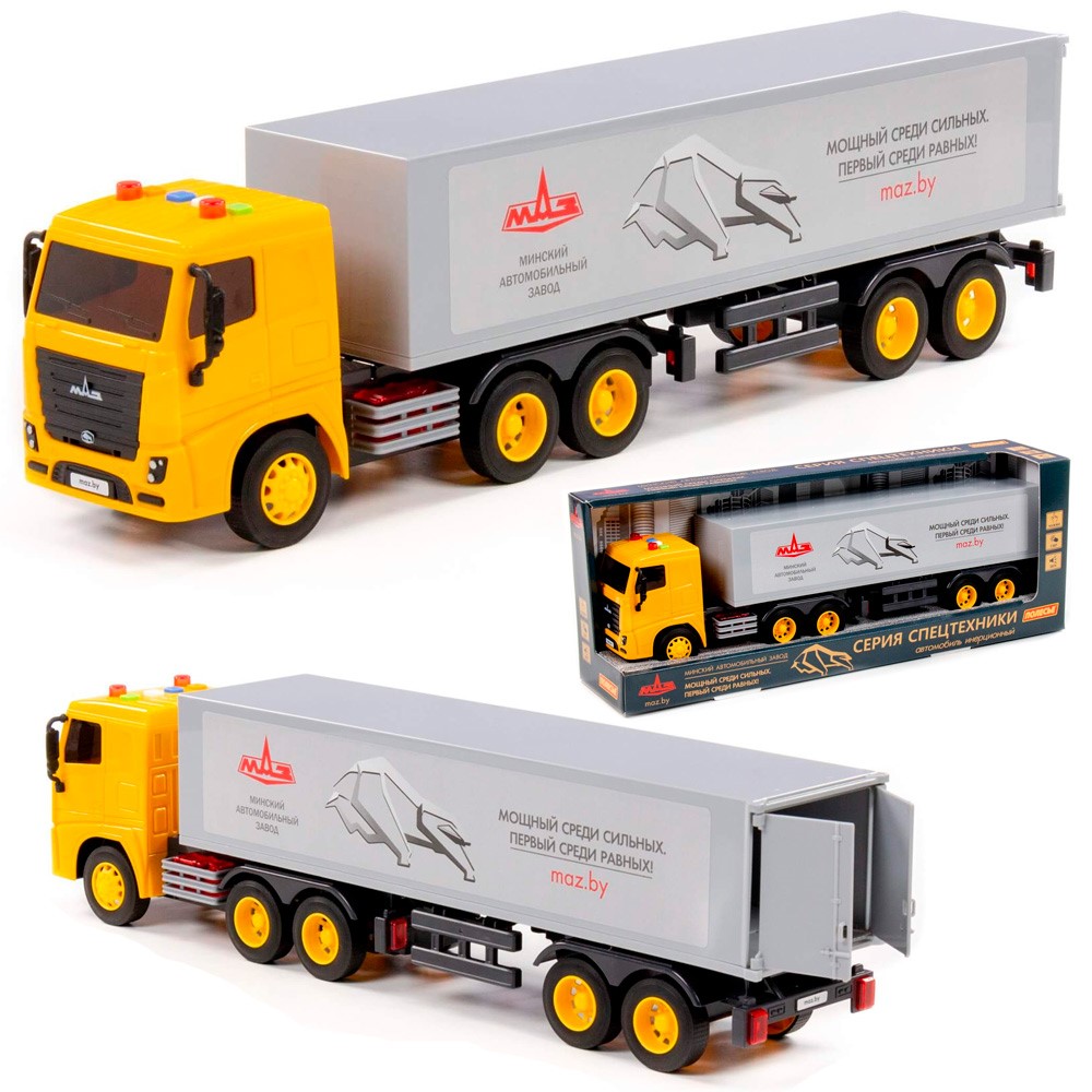 Автомобиль МАЗ тягач с полуприцепом со светом и звуком в коробке 94124 П-Е