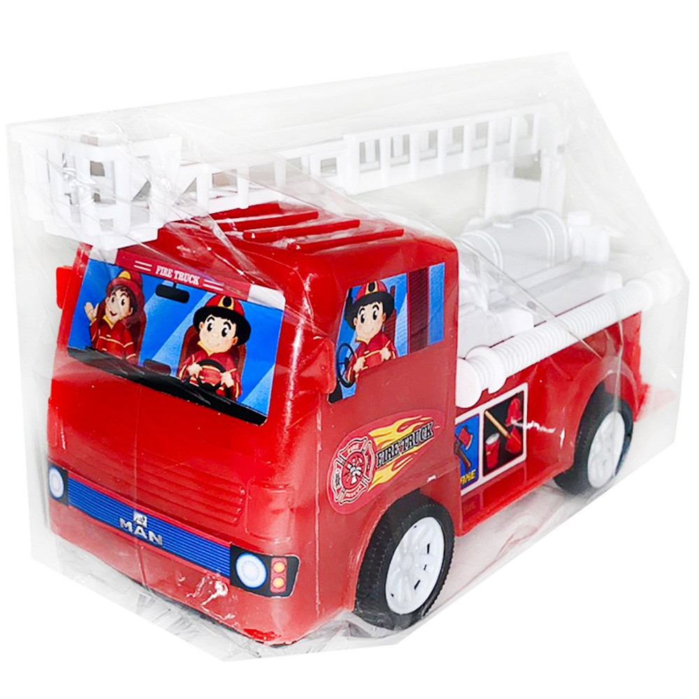 Яркая модель представляет собой копию пожарного автомобиля, оснащённого лестницей.