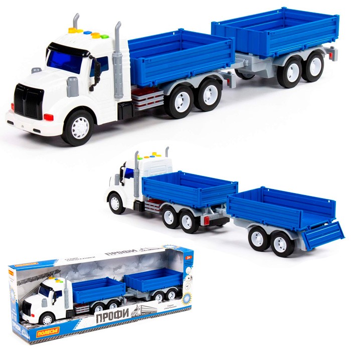 Автомобиль Профи бортовой с прицепом инерционный со светом и звуком синий в коробке 92564 П-Е /4/