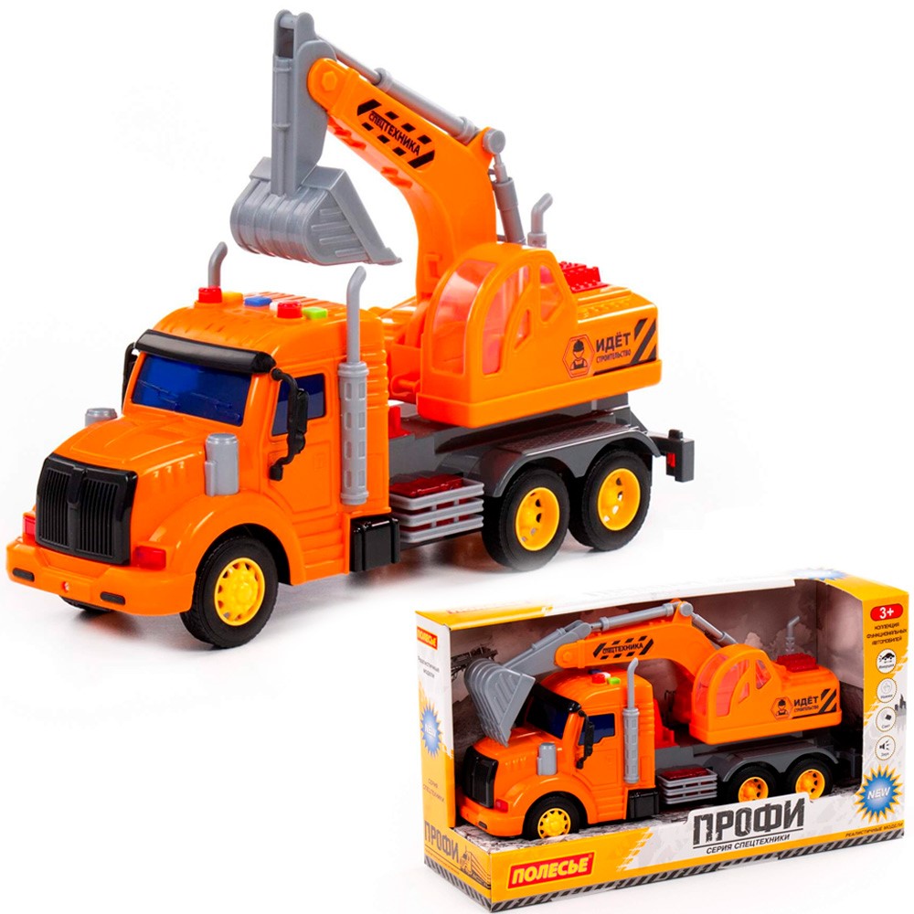 Автомобиль Профи экскаватор инерционный со светом и звуком оранжевый в коробке 86457 П-Е /8/