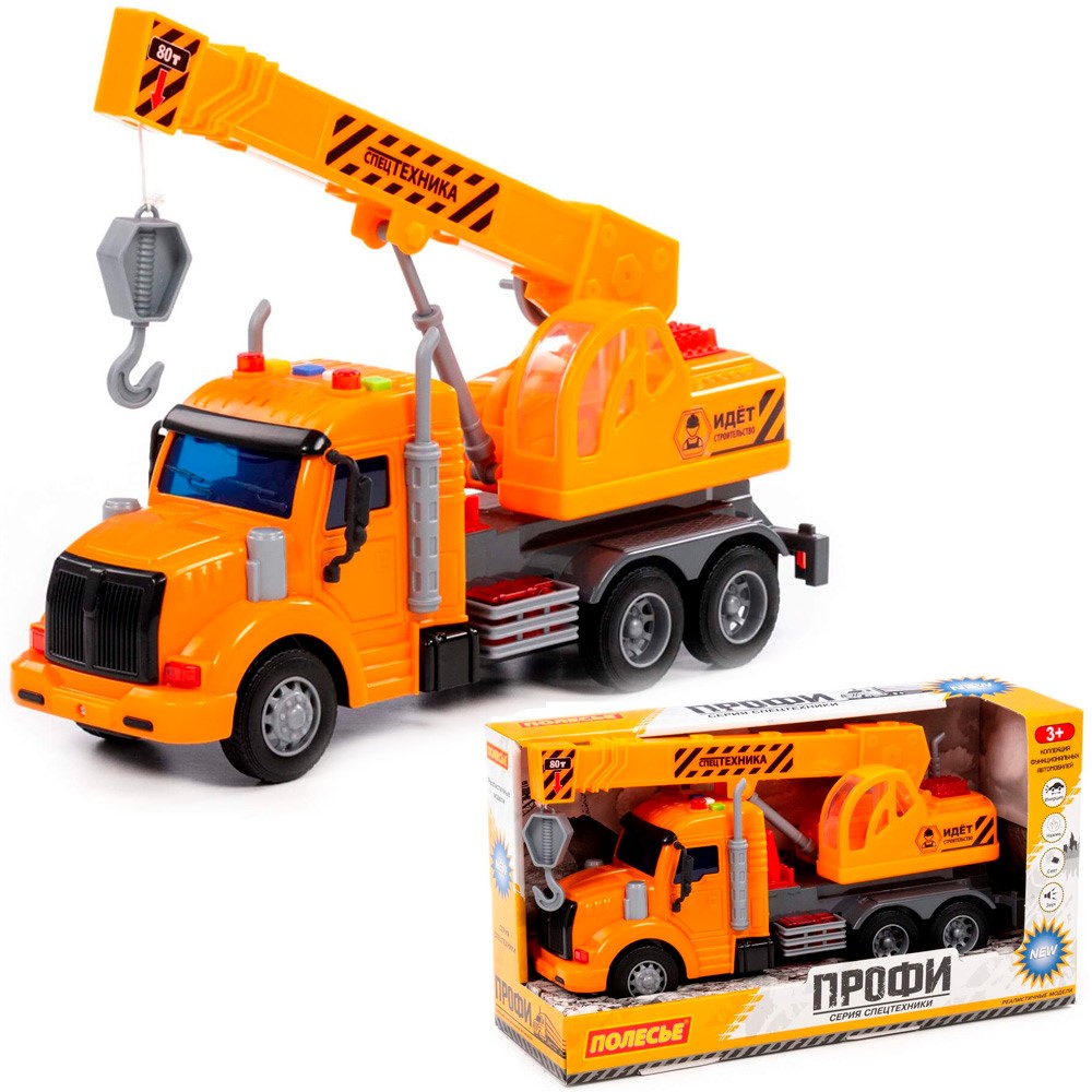 Автомобиль Профи кран инерционный со светом и звуком оранжевый в коробке 86617 П-Е /8/