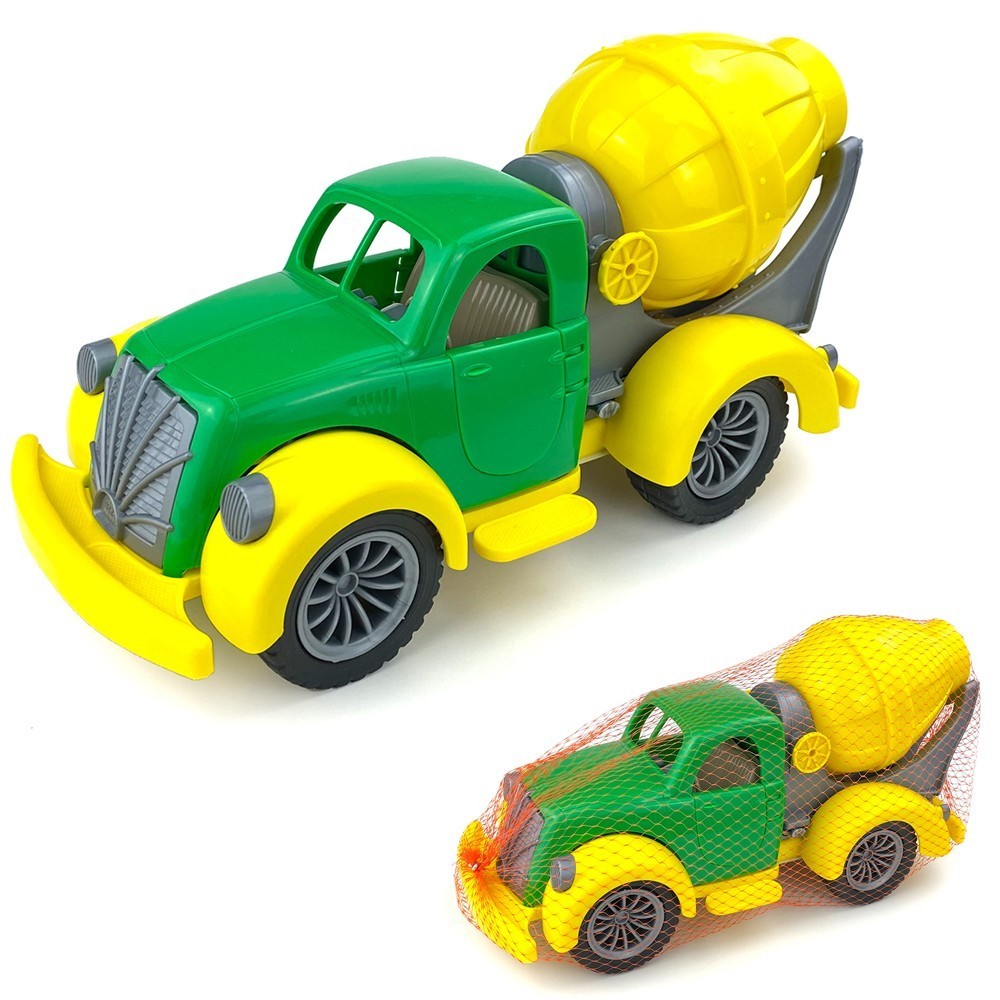 Яркая модель представляет собой копию бетономешалки.