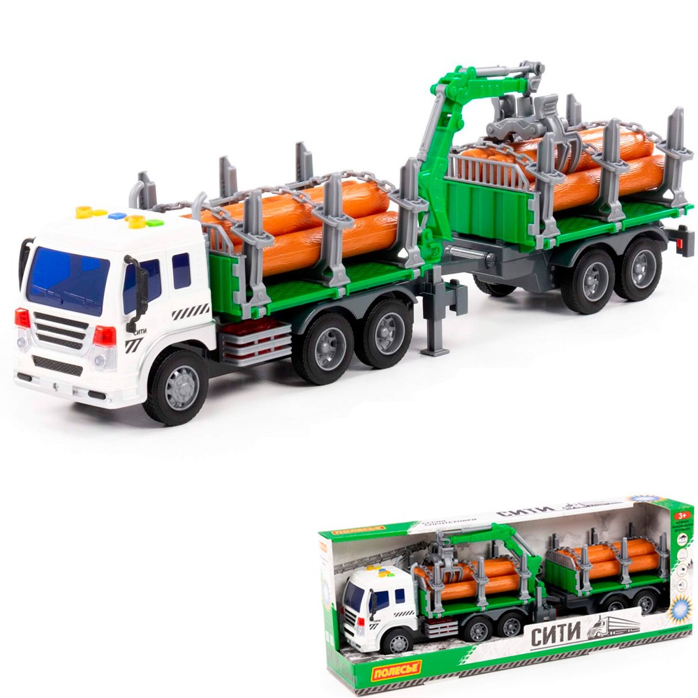 Автомобиль Сити лесовоз с прицепом инерционный со светом и звуком синий в коробке 96081 П-Е
