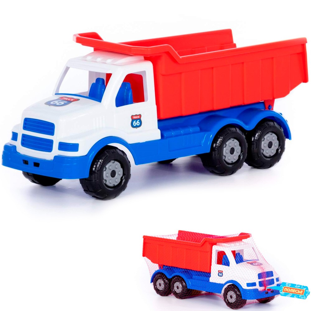 • Яркая модель представляет собой копию грузовика с вместительным кузовом.