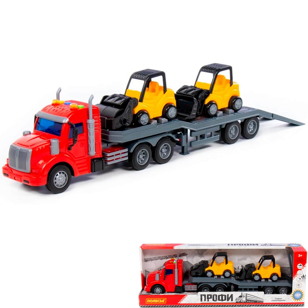 Комплектация: автотрейлер - 1 шт, строительно-дорожные машинки - 2 шт