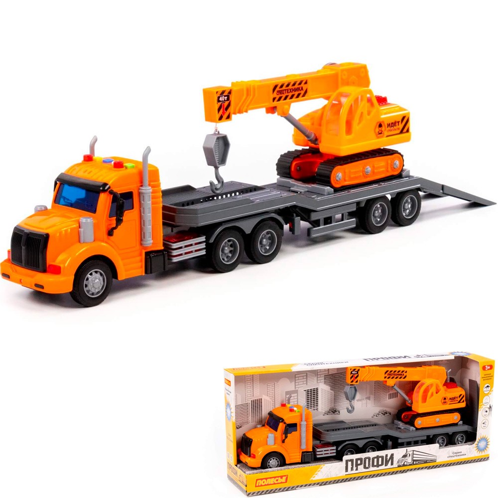 Автомобиль тягач Профи-трейлер инерц. со светом и звуком+гусеничный кран 84009 П-Е /4/