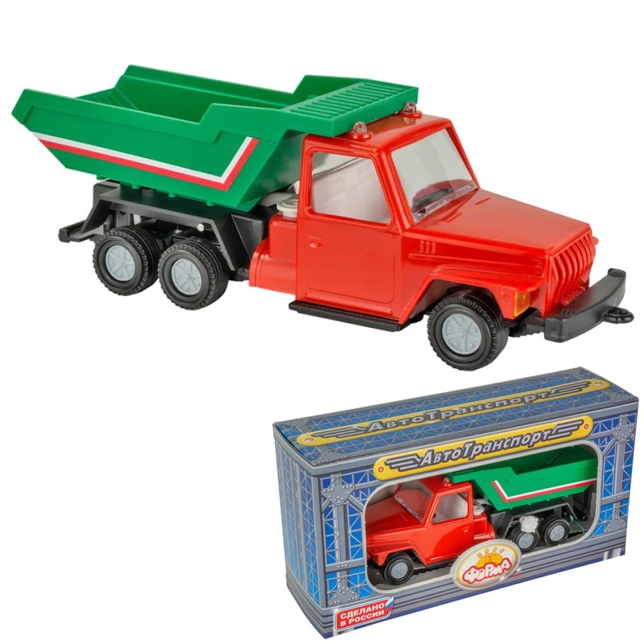 • Яркая модель представляет собой копию грузовика с вместительным кузовом.