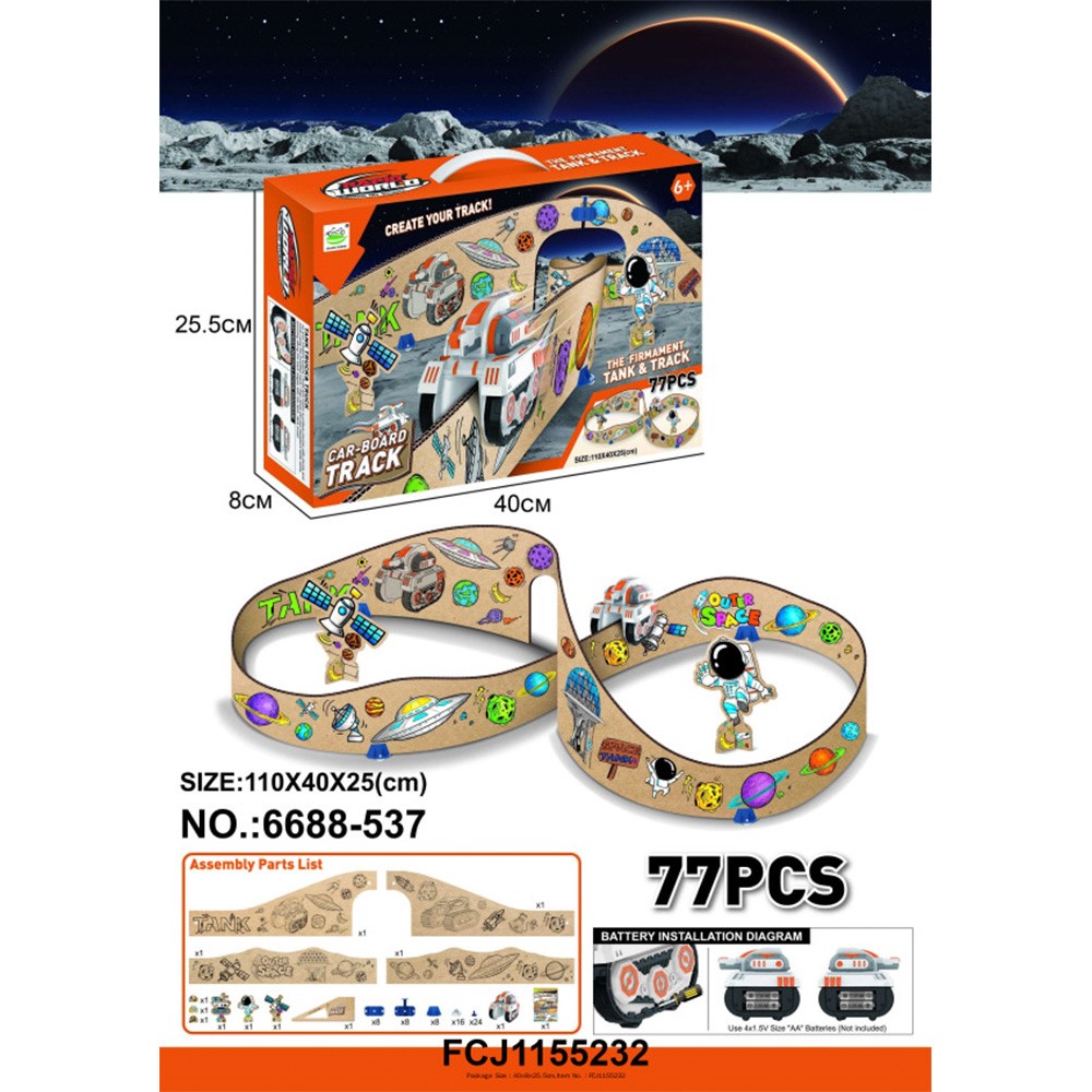 Комплектация: автотрек - 1 шт, танк - 1 шт, инструкция - 1 шт, детали для автотрека - 69 шт