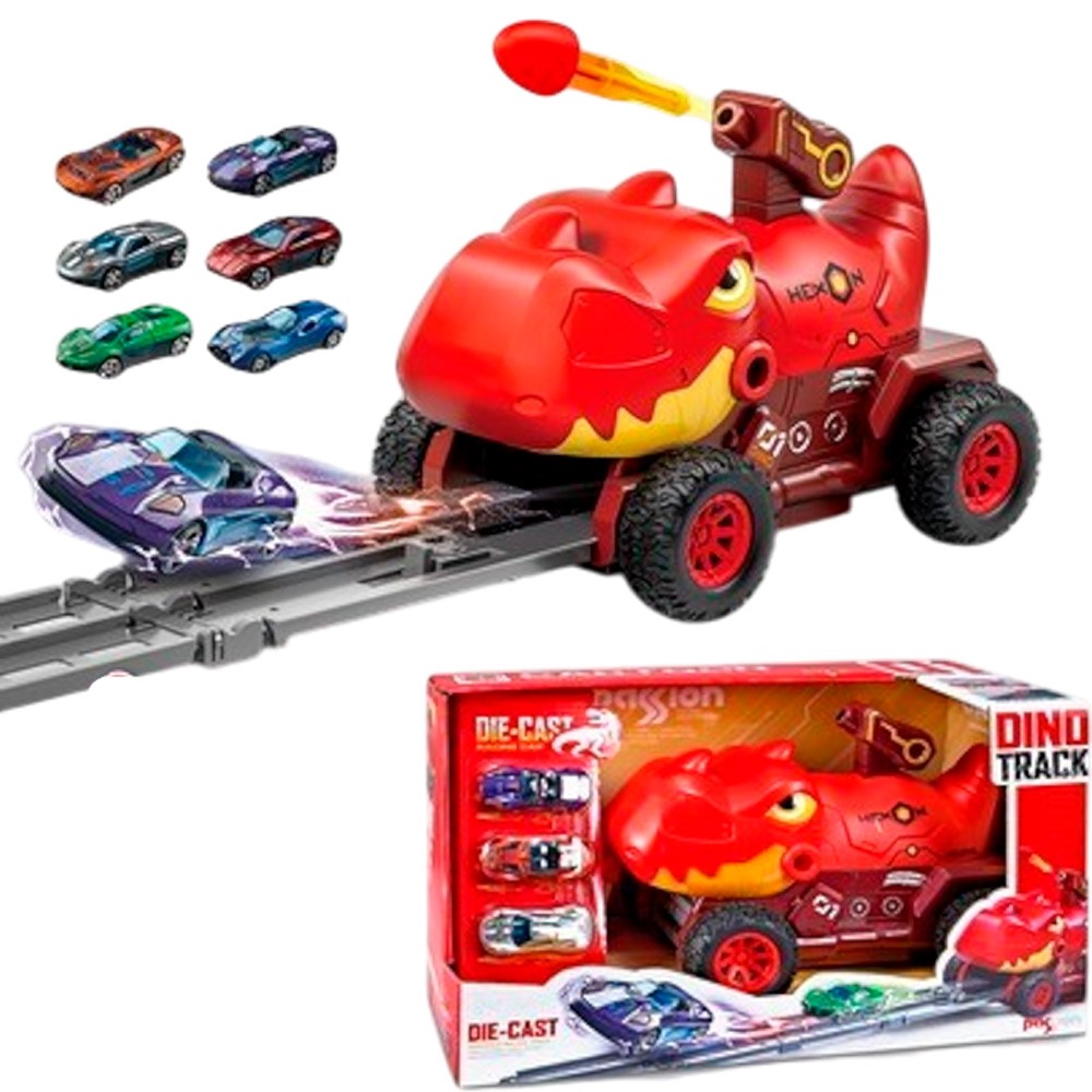 Автотрек CY-2222A Динозавр с набором машин в кор.