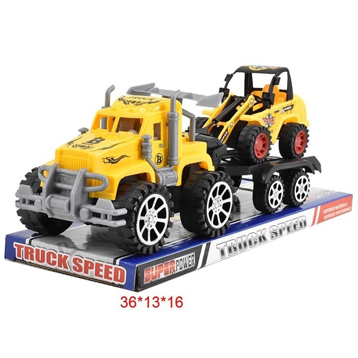 • Яркая модель представляет собой копию автовоза с экскаватором.