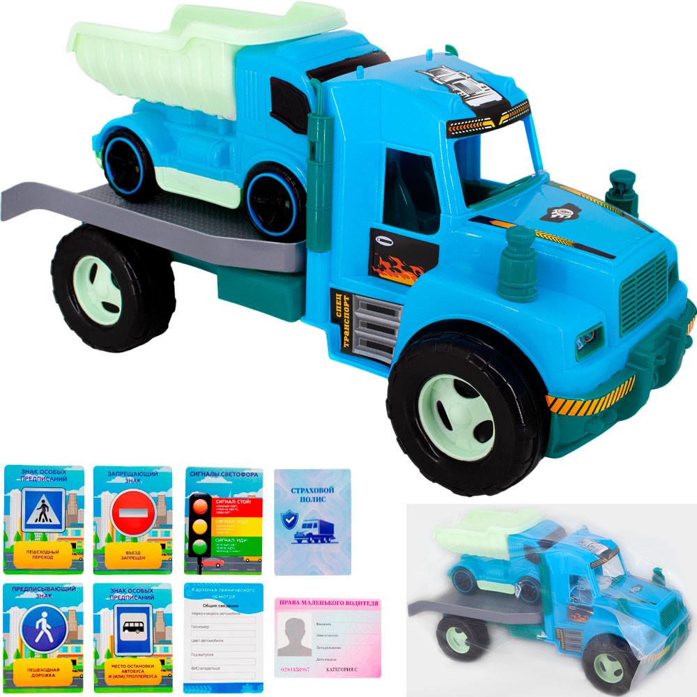 Автовоз с карточками водителя КРОКОТАМ сине-зеленый А-7150 /8/