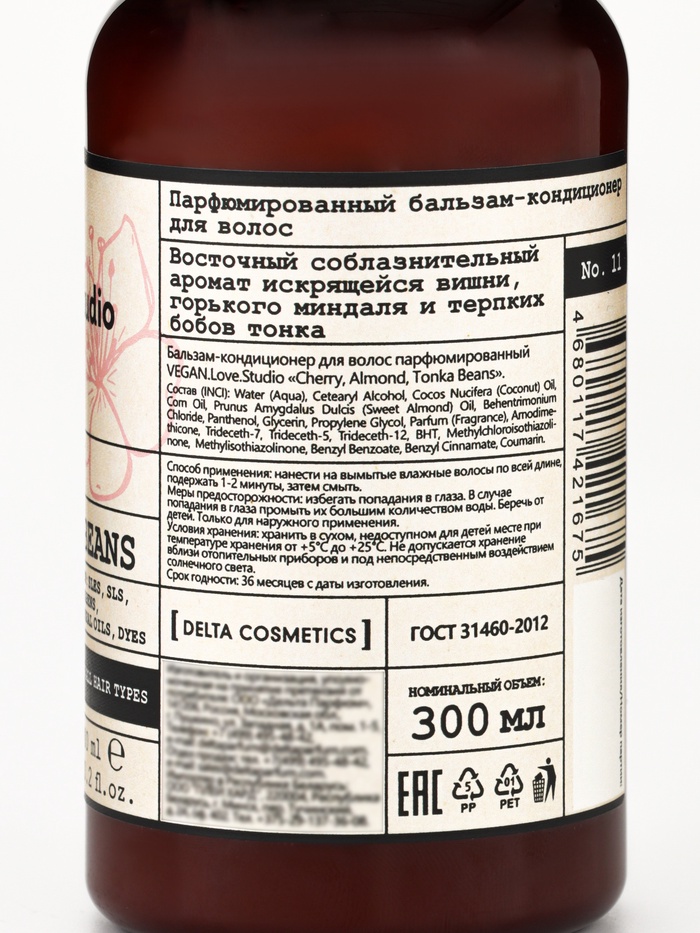 Бальзам-кондиционер для волос парфюмированный VEGAN.Love.Studio «Вишня, Миндаль, Бобы тонка», 300 мл