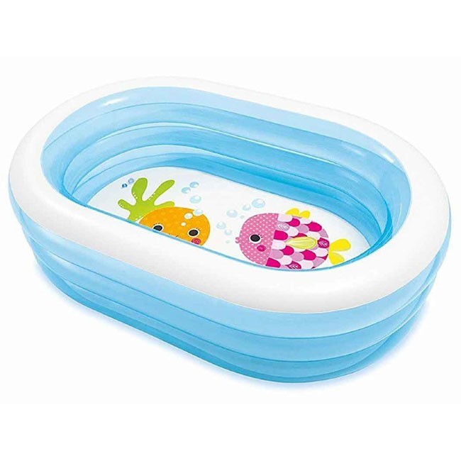 Бассейн овальной формы декорирован ярким рисунком и предназначен для малышей от 6 лет. Может использоваться как для воды, так и в качестве сухого бассейна. Состоит из трех надувных колец. Изготовлен из высококачественного винила толщиной 0,3 мм, устойчивый, надежный и безопасный. Имеет мягкие стенки с широкими бортиками и прочное дно. Довольно просто оформлен, стенки бассейна прозрачные, что обязательно заинтересует ребенка. Оснащен клапаном слива. Борта состоят из трех колец, надуваются каждый отдельно. Дно бассейна украшено изображением обитателей моря. Бассейн легко надувается и устанавливается на любой ровной поверхности. На холодное время года не рекомендуем оставлять бассейн на открытом воздухе.