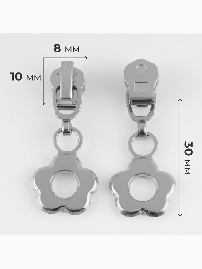 Бегунок для металлической молнии, №3, «Цветок», 10 шт., цвет никель (комплект 2 шт)
