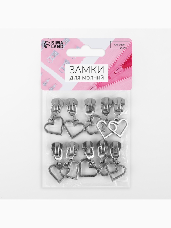 Бегунок для металлической молнии, №5, «Сердце», 10 шт., цвет никель