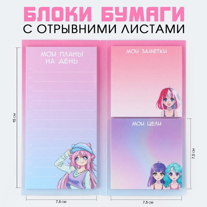 Блоки бумаги с отрывными листами, 3 блока по 30 листов «Аниме»