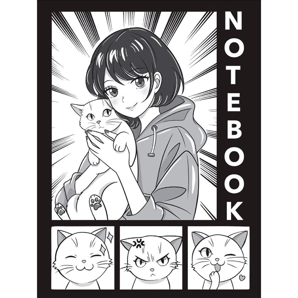 Блокнот 467-0-159-14839-5 Аниме Монохром. Девочка с котиком