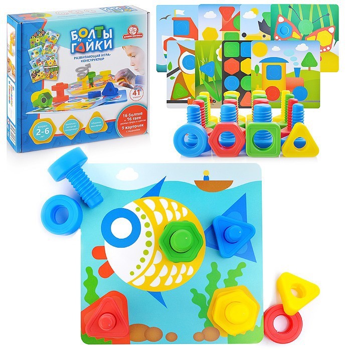 Болты и Гайки тип 1 16 болтов и 16 гаек, 8 карточки с заданиями 1411 в пак.