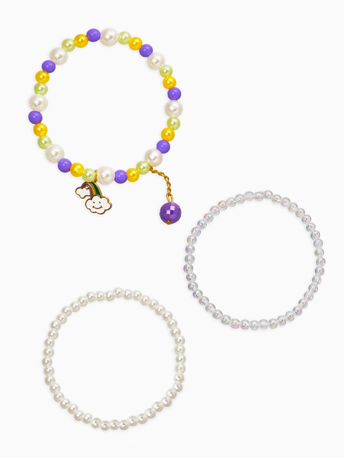 Браслет детский «Выбражулька», 3 шт. набор, радуга с подвеской, жемчуг, цветной (комплект 2 шт)