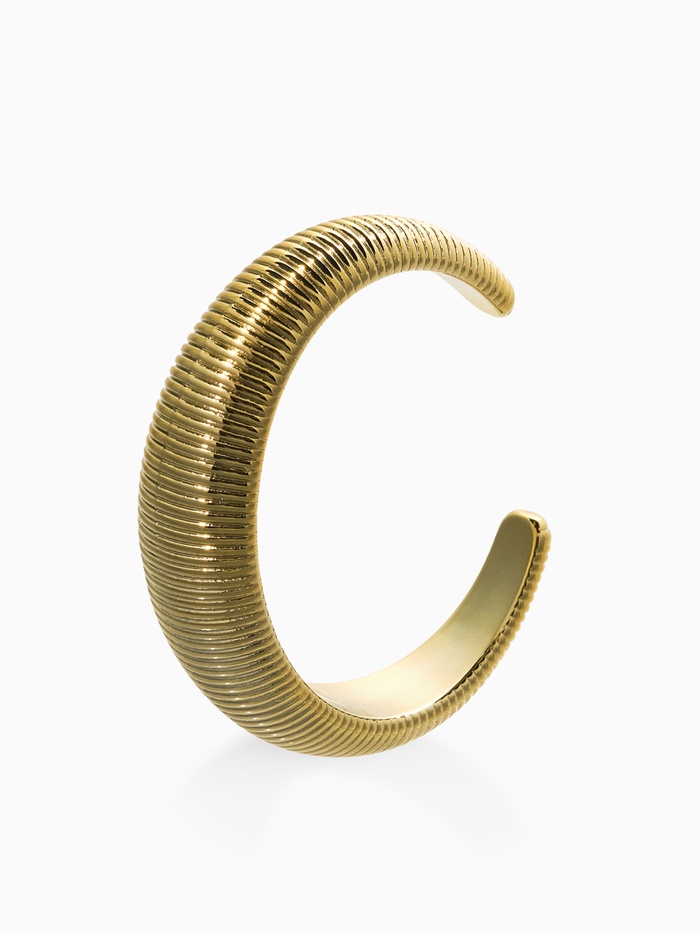 Создавайте яркие акценты одним движением руки Женский браслет-манжета золотистого цвета – воплощение простоты и современного дизайна. Акцентируя внимание на минимализме форм, изделие придает образу элегантность и законченность, дополняя любую стилистическую концепцию.