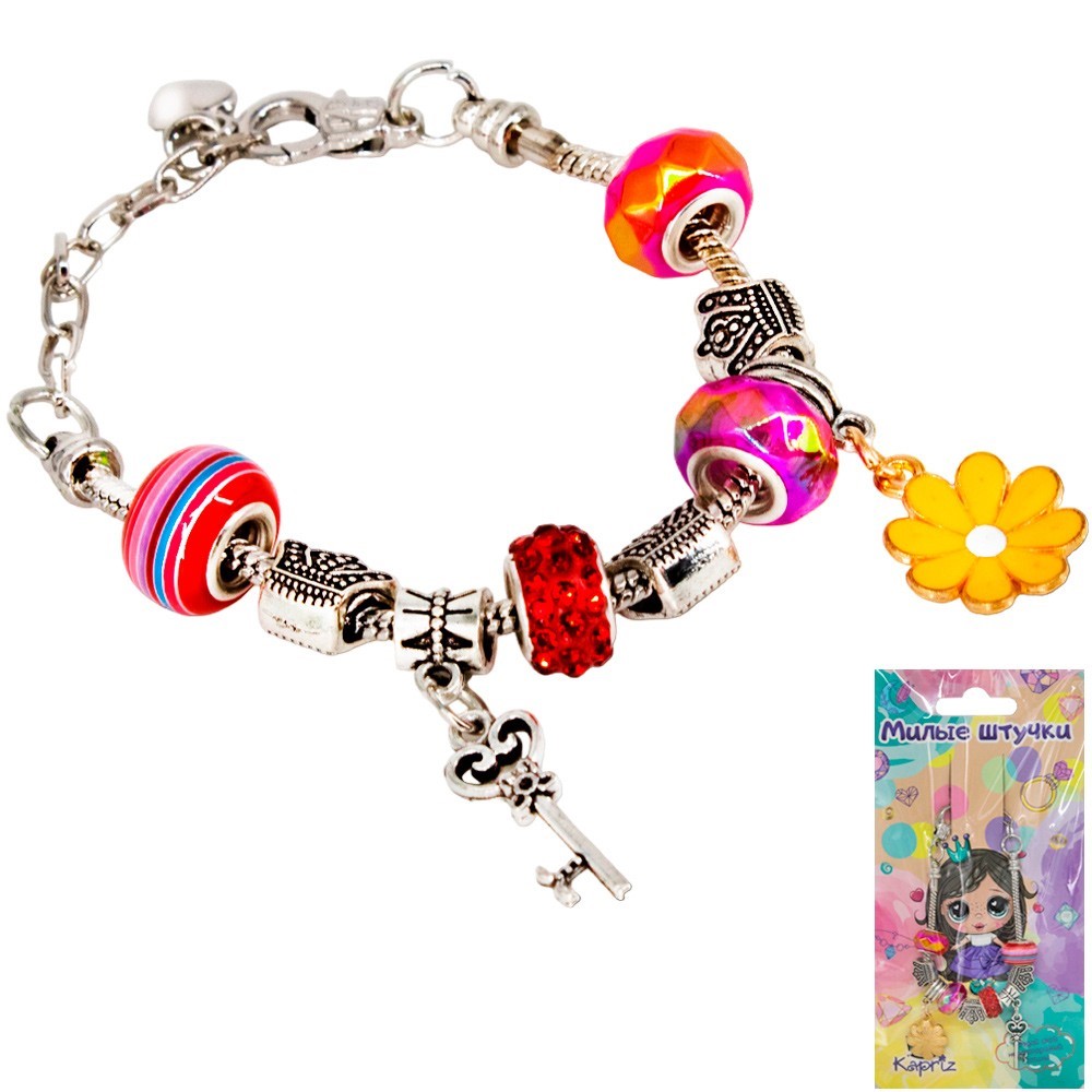 Браслет имеет стильный дизайн и будет аккуратно смотреться на ручке. Изделие украшено разноцветными шармами и оригинальными кулонами-подвесками. Застегивается на крепкий замочек. Носить браслет можно с любой одеждой.