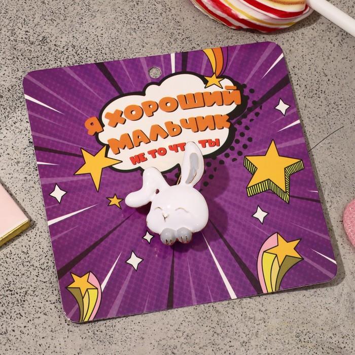 Брошь «Крольчонок» с лапками, цвет бело-серый в золоте