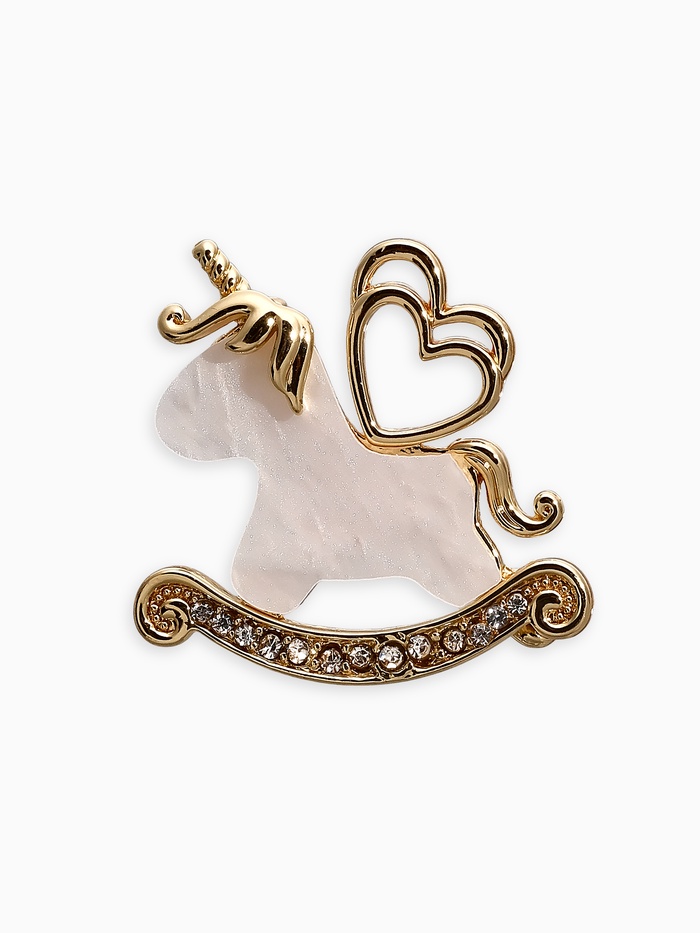 Брошь «Лошадка-Качалка. Единорог», белая в золоте