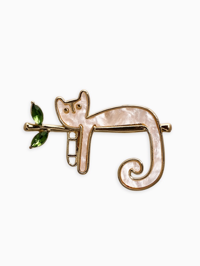 Мягкий пушистый котенок на золотом дереве Женская брошь с перламутровым котенком – очаровательный аксессуар, который непременно покорит сердце своей непосредственностью и уютом. Изображение крошечного питомца, сидящего на ветвях дерева, буквально погружает в детство и наполняет образ нежностью и покоем.
