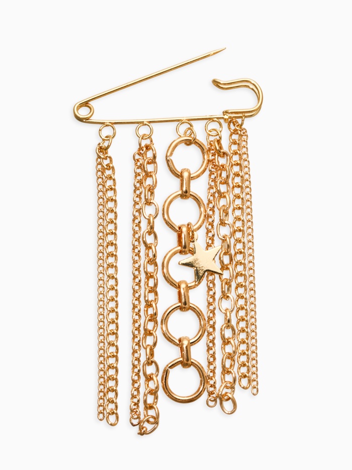 Позвольте своему образу засиять блеском золотых звёзд! Встречайте нашу уникальную золотистую булавку с подвесами, вдохновлённую величественным символом звёздного неба. Эта миниатюрная композиция украсит одежду, сумочку или шляпку, став истинным шедевром стилизации и воплощением женственности.