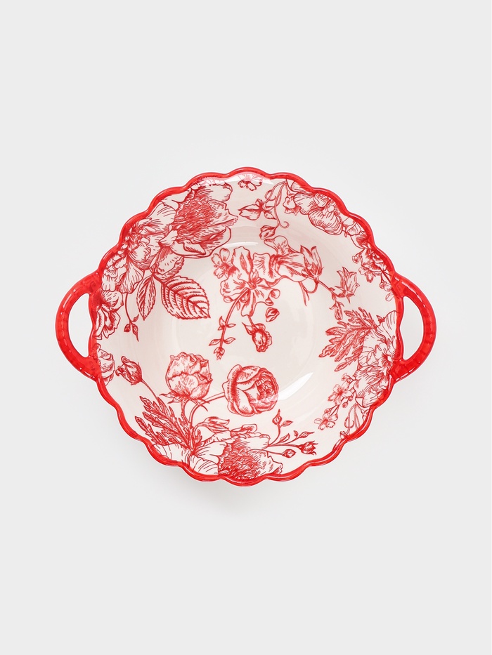 Бульонница с ручками Botanica, 20×17×6 см, фарфор, белая, красная