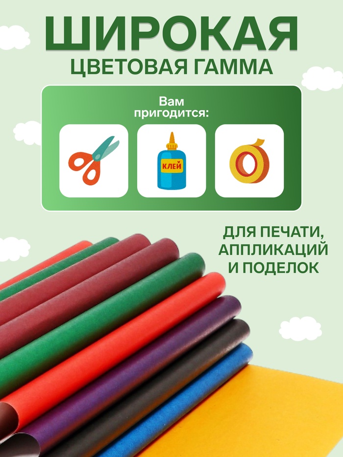 Бумага цветная А4, 16 листов 8 цветов Kuromi, немелованная газетная, односторонняя, на скрепке, 48 г/м²