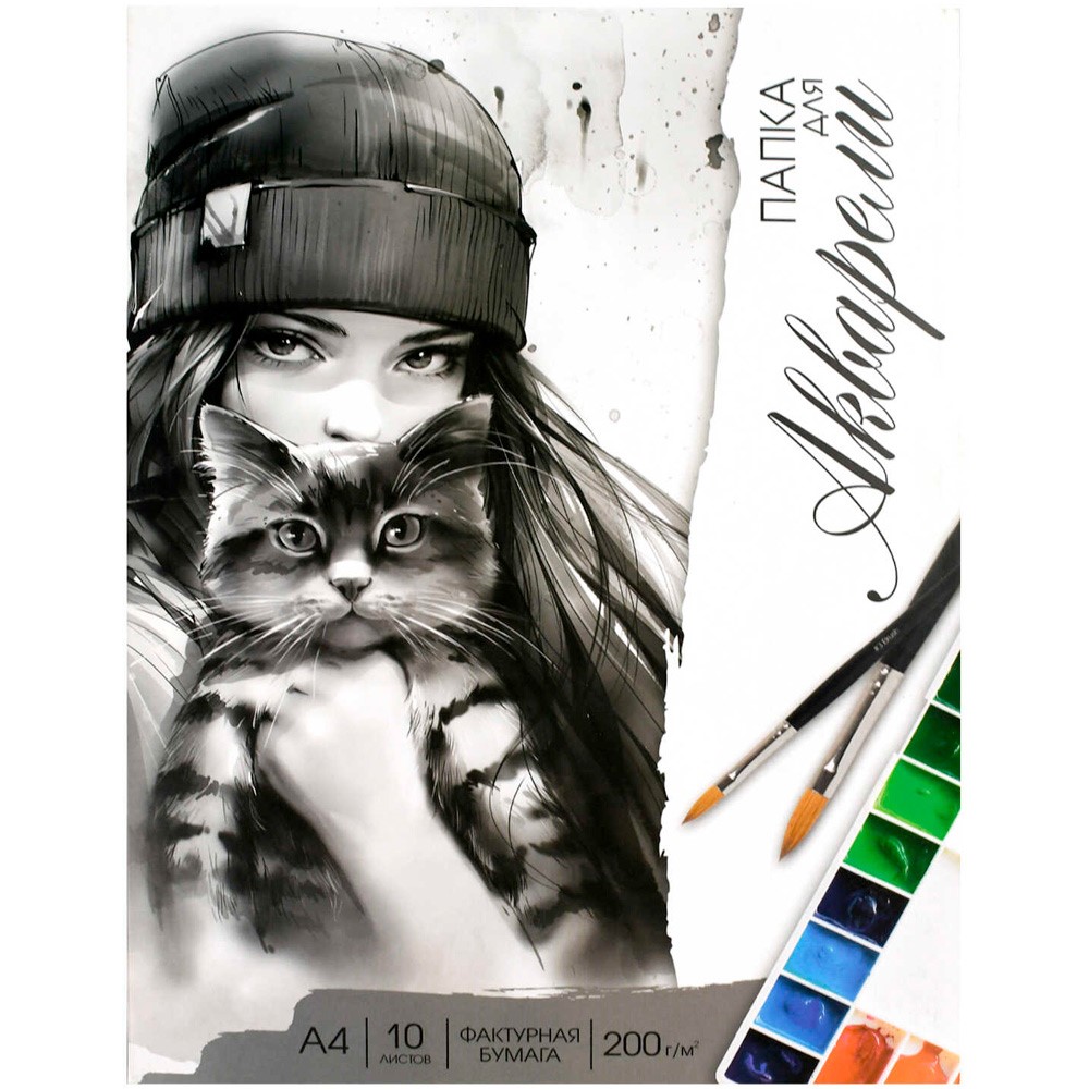 Бумага для акварели 10 л. Девушка с котом. Осень 69935