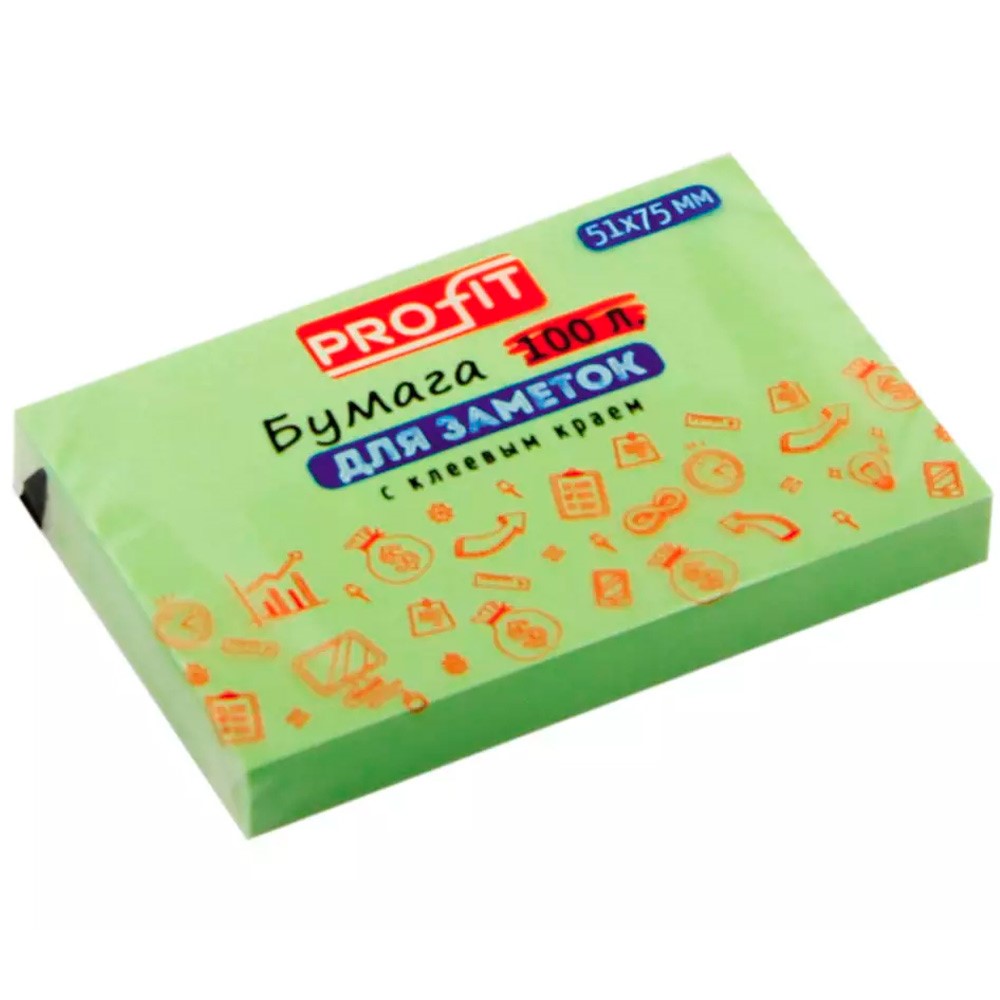 Бумага для заметок с клеевым краем ЗЕЛЕНАЯ 51х75мм,100л, ЗБ-5569