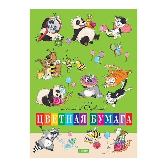 Бумага цвет. 16 л. 16 цв. А4 Забавные животные 16Бц4_18827 Hatber