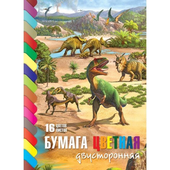Бумага цвет 16 л 16 цв двусторонняя ECO Эра динозавров 19275 Hatber